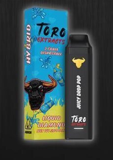 Toro Extracts 2 gram disposable is a cannabis brand primarily known for its liquid diamond and it’s new design with led display that tells you the battery level and number of puff left.